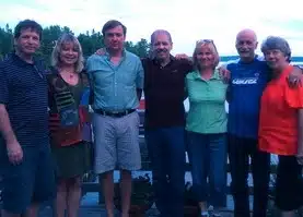 And here is the mighty group at Dorothea and Mark’s home on Storm Bay Road. This was taken at the Name-Your-Own-Pizza Party at the dock. From left to right: Wayne Kelso, Michelle Lundy, Mark Belanger, myself, Dorothea Belanger, Bob and Linda Cortez. Take a look at the video below for more info.
